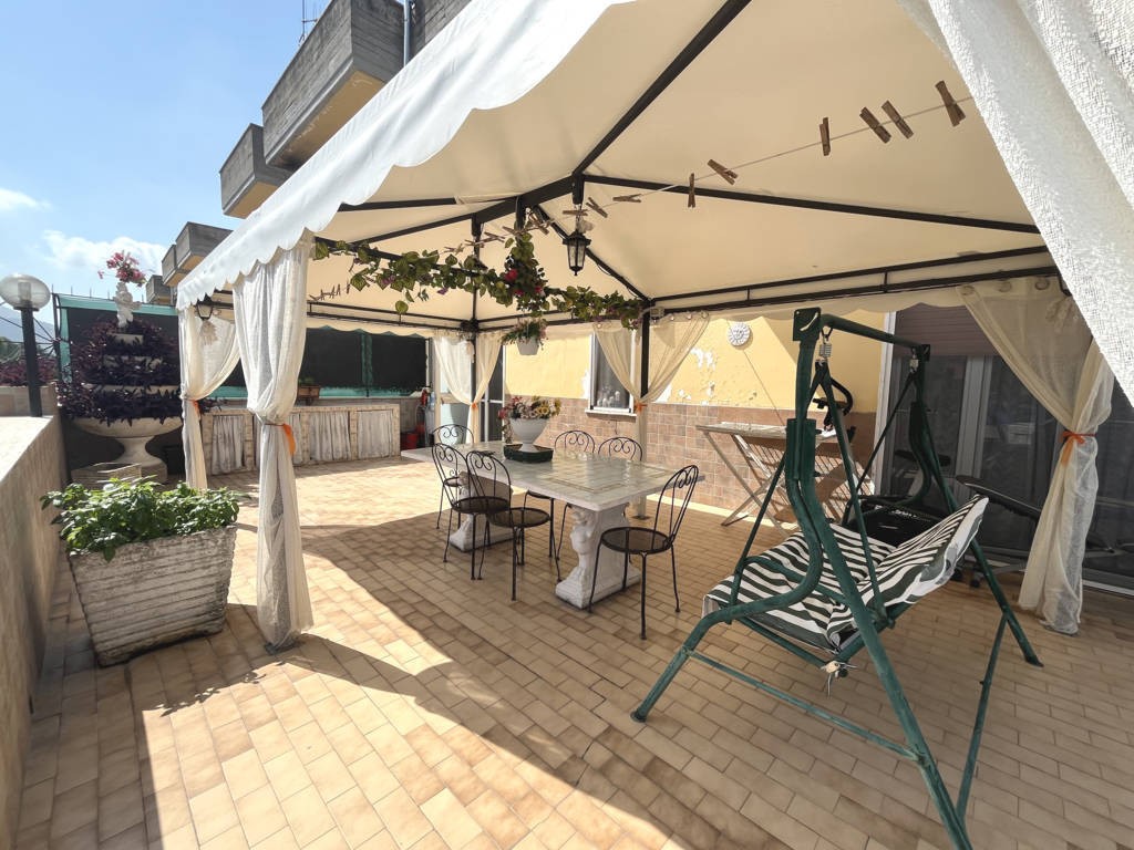 L'appartamento di mq 140 circa è composto da una cucina abitabile, una sala molto spaziosa, tre comode camere da letto, un bagno con box doccia e scarico lavatrice, un secondo bagno con vasca.