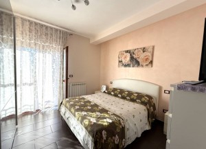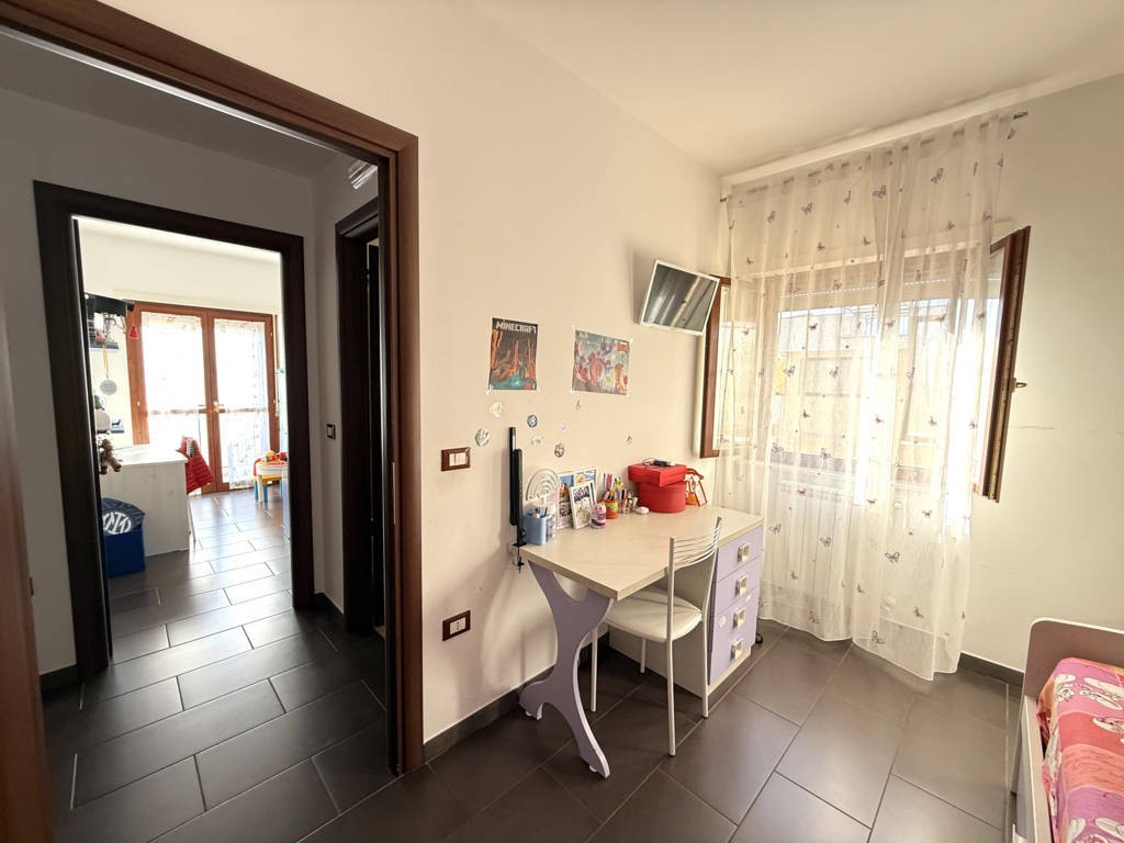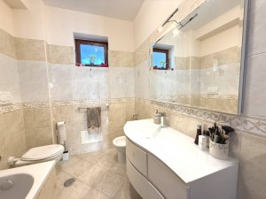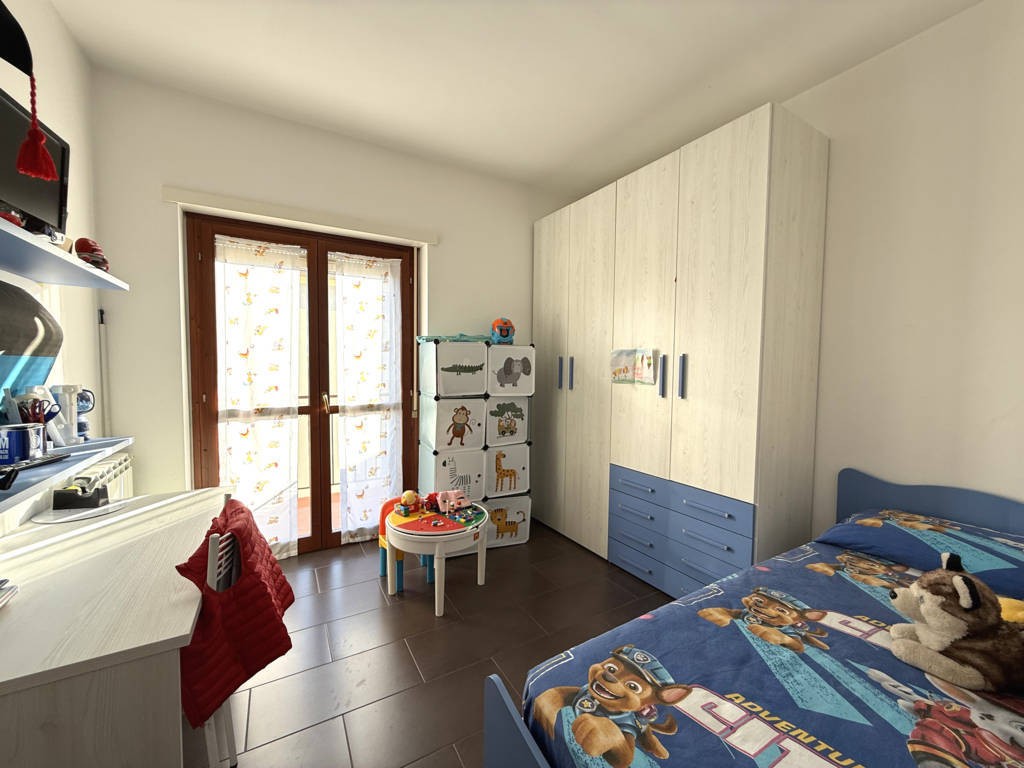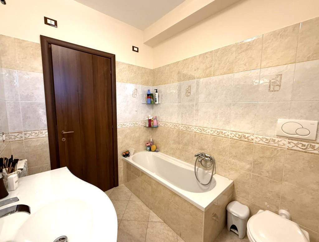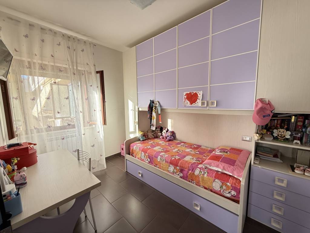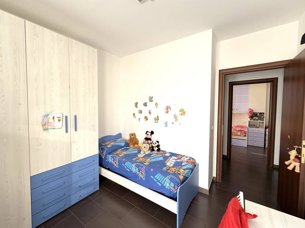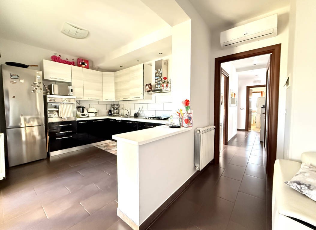 La zona notte è composta da una camera matrimoniale e due camere singole, offrendo spazio e privacy per tutta la famiglia. Gli interni sono curati nei minimi dettagli, con infissi in legno e vetrocamera, portone blindato e aria condizionata per il massimo comfort. Due bagni, uno con vasca e l'altro con box doccia, garantiscono praticità e funzionalità.
