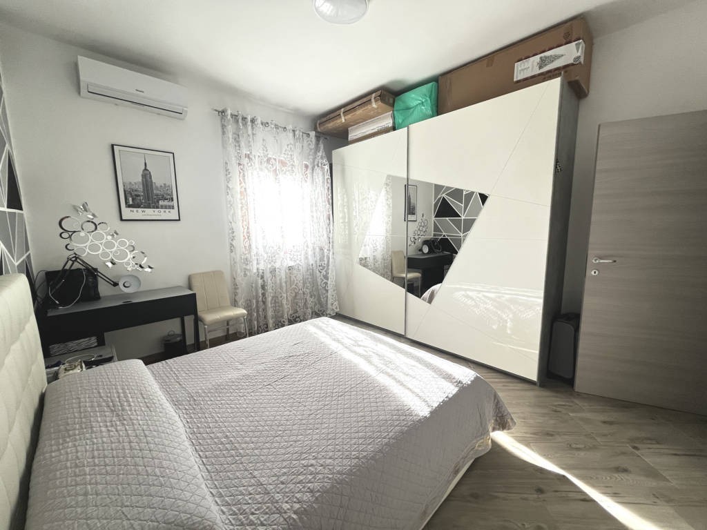 L'appartamento dispone di due camere matrimoniali e una camera media, ideali per ospitare una famiglia o per creare uno spazio dedicato al lavoro. I due bagni, uno con predisposizione per lavatrice e asciugatrice e l'altro con box doccia, offrono comfort e funzionalità. Non mancano le comodità moderne, come i 3 condizionatori, n.3 termoconvettori, caldaia collegata al gas metano con piastre in ogni ambeinte, infissi in PVC doppio vetro, portone blindato.
