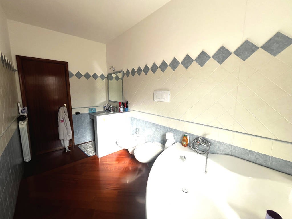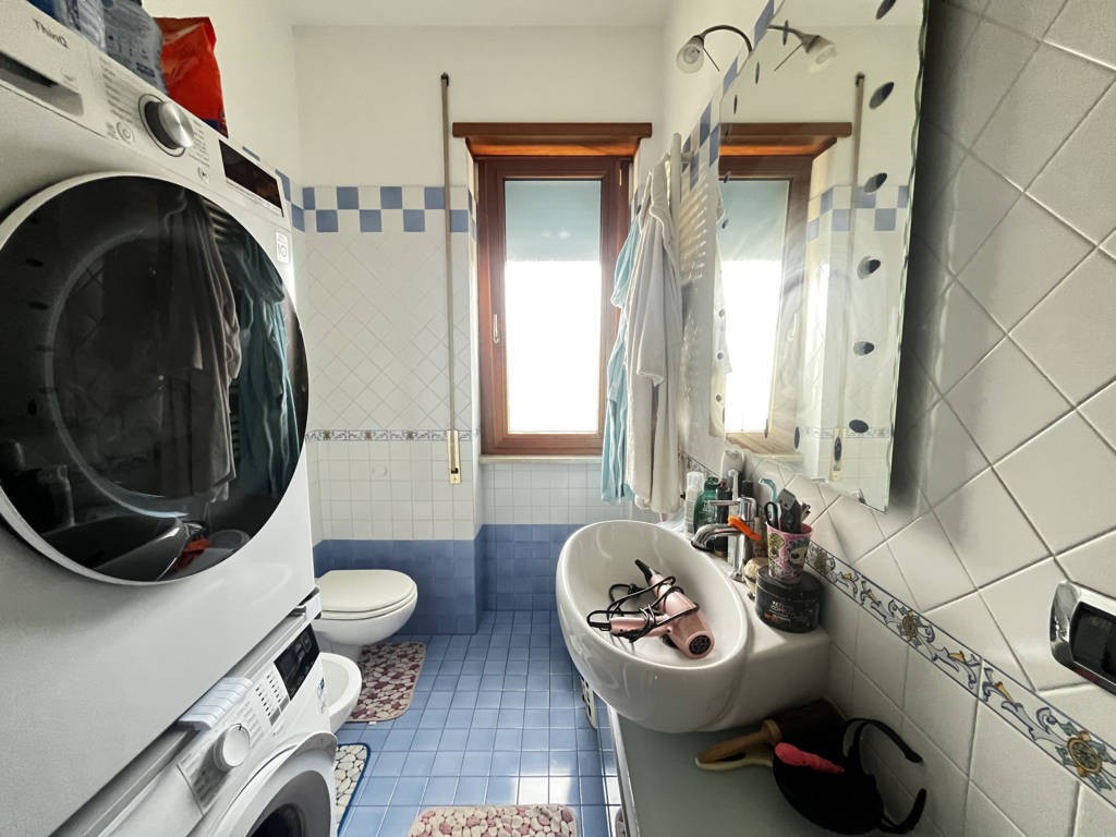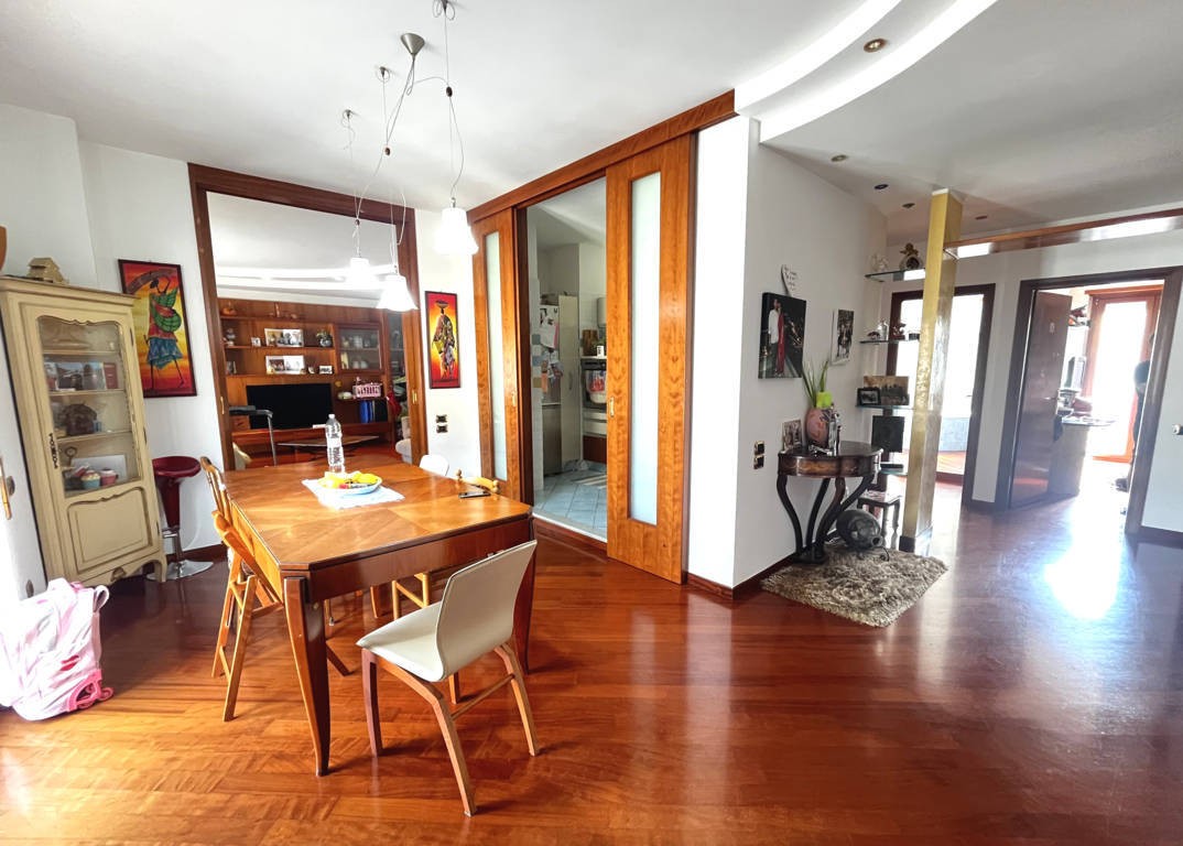 L'appartamento dispone di due camere matrimoniali e una camera singola, ideali per famiglie o per chi desidera uno spazio extra. I due bagni, uno con box doccia e l'altro con vasca, sono moderni e funzionali. Gli infissi in PVC doppio vetro garantiscono un ottimo isolamento termico e acustico, pavimento in parquet molto elegante, termoconvettori e i condizionatori caldo/freddo assicurano il massimo comfort in ogni stagione.